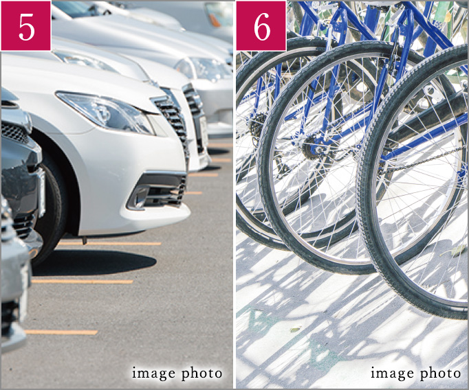 ファミリーユースの快適性にこだわって、一階には住戸から直接利用できる駐車場を設置。また3人乗り自転車が置きやすいよう平置き駐輪場もご用意しています。