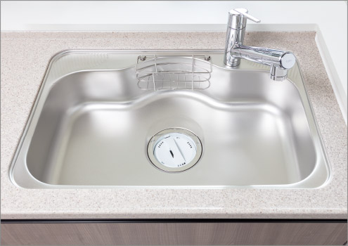 制振材を取り付けることで、水はね音や、物を落とした時の音も軽減できる、静音性に優れたシンクです。