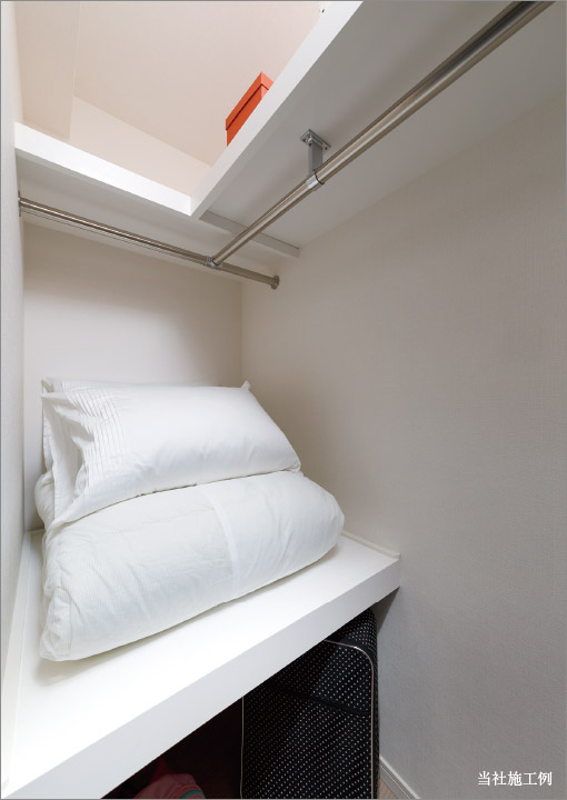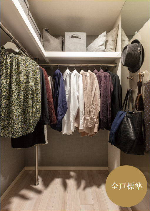 オールシーズンの衣類をまとめて収納すれば、煩わしい衣替えも楽々。枕棚も備えているため、ファッションアイテムも機能的に整理整頓できます。
