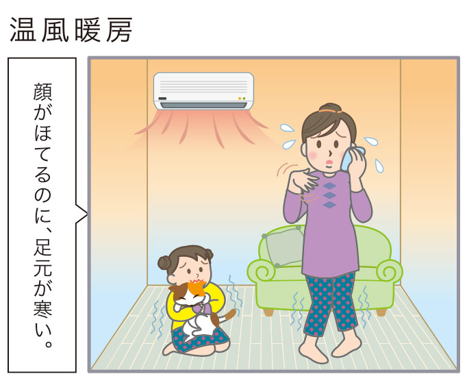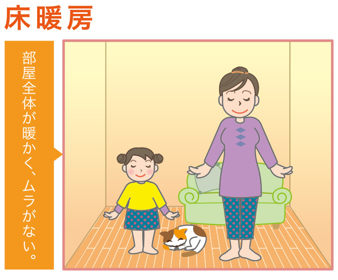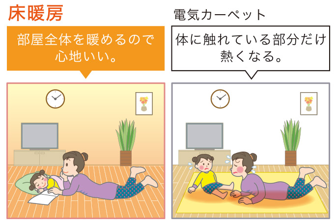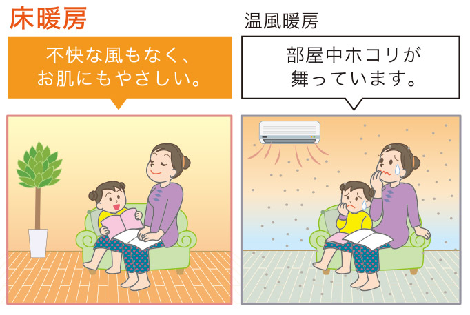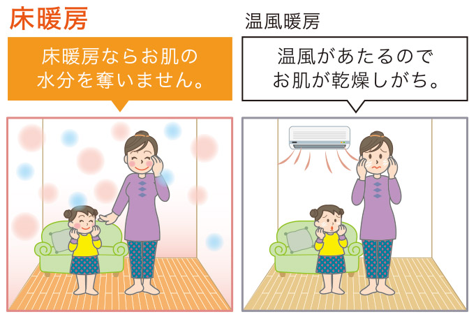 床暖房なら温風がないので、お肌やのどが乾燥しにくいのもうれしいポイントです。