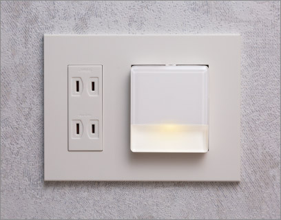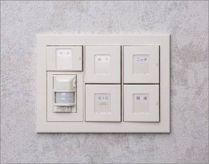 人を感知して自動で点灯するセンサー付の玄関スイッチ。夜間に帰宅しても足元の安全性をしっかりと確保します。