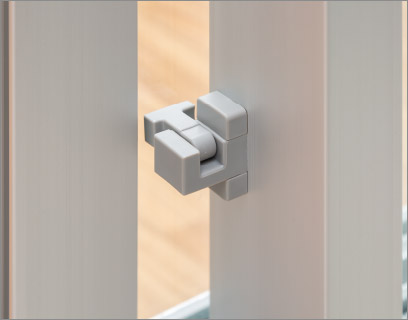 開閉時に誤って指を挟んでしまわないように、隙間をつくるドアストッパーを備えました。(サッシの大きさにより取付位置、個数は異なります。)