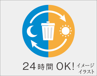 朝の忙しい時間帯を避けるなどゴミ出しのタイミングも自由。曜日や時間を気にせずいつでもゴミが捨てられます。