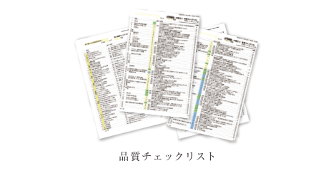 社内検査から社外の第三者検査実施まで、住まいづくりの各工程において、何重もの確認・検査・品質管理を実践。特に住まいの耐久性・快適性・資産性に大きな影響を及ぼす構造部分については専門チームによる厳密な検査を行い、将来にわたってご安心いただける品質のご提供に努めています。